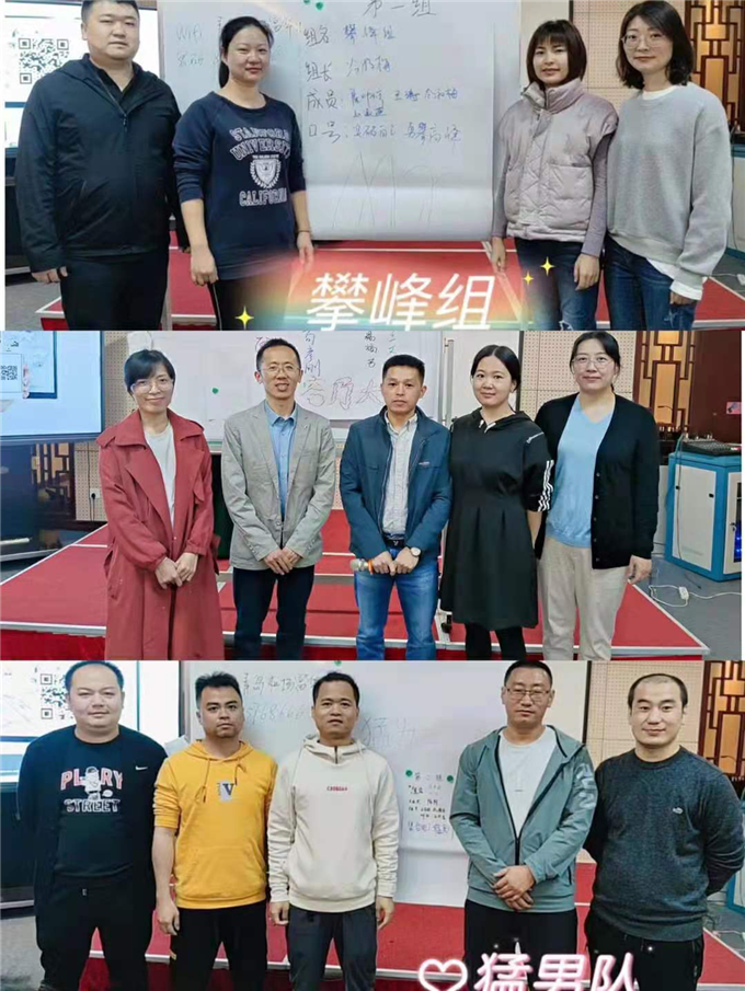 分组是每次内训必不可少的内容,本次分为4个小组进行互相PK,来青岛学习的都是各个办事处十年工龄的大佬,小编我是瑟瑟发抖,一定要向大佬好好学习。