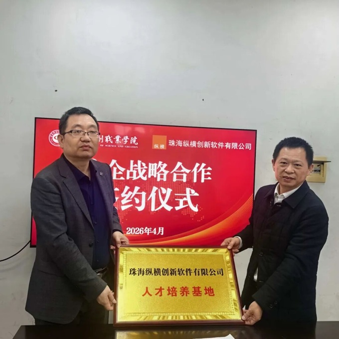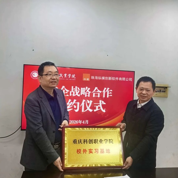 2026年4月14日上午,重庆科创职业学院与珠海纵横创新软件有限公司重庆分公司校企合作签约授牌仪式顺利举行。珠海纵横创新软件有限公司重庆分公司总经理何银龄、项目经理邹芝达、智能建造与设计学院院长陈浩、党总支书记王韦等专业相关人员出席仪式,共商产教融合、协同育人大计。
