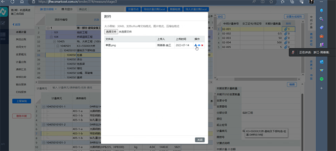 本次培训方式为线上教学,由浙江办周工来进行讲解。本次培训面向所有造价人员,通过对产品的演示来验证给施工方带来工作上的便捷性;另外纵横技术人员也从各个单位及相关负责人的角度出发,全面分析计量支付结算决算系统对于业主单位、施工单位、单位、监理单位、资料员、计量支付审核人员的好处。节省大家的工作时间,提高工作效率。而且也为计量支付的资料保护提供了非常良好的平台,不怕因为外界环境影响而导致的资料缺失。