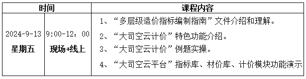 关于2024年9月13日开展大司空云计价软件免费实操培训的通知