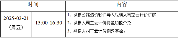 秉承为更好地服务公路工程计量人员、造价人员,加强广大公路工程计量、造价人员对纵横公路工程计量支付软件及造价管理系统的理解及应用,解决实际工作中出现的问题,推动公路工程计量工作、造价工作的数字化、智慧化、标准化、规范化、精细化。应广大工程人员的要求,纵横软件重庆办事处于2025年3月21日开展关于“纵横大司空云计价软件高级应用操作”课程取得圆满成功。