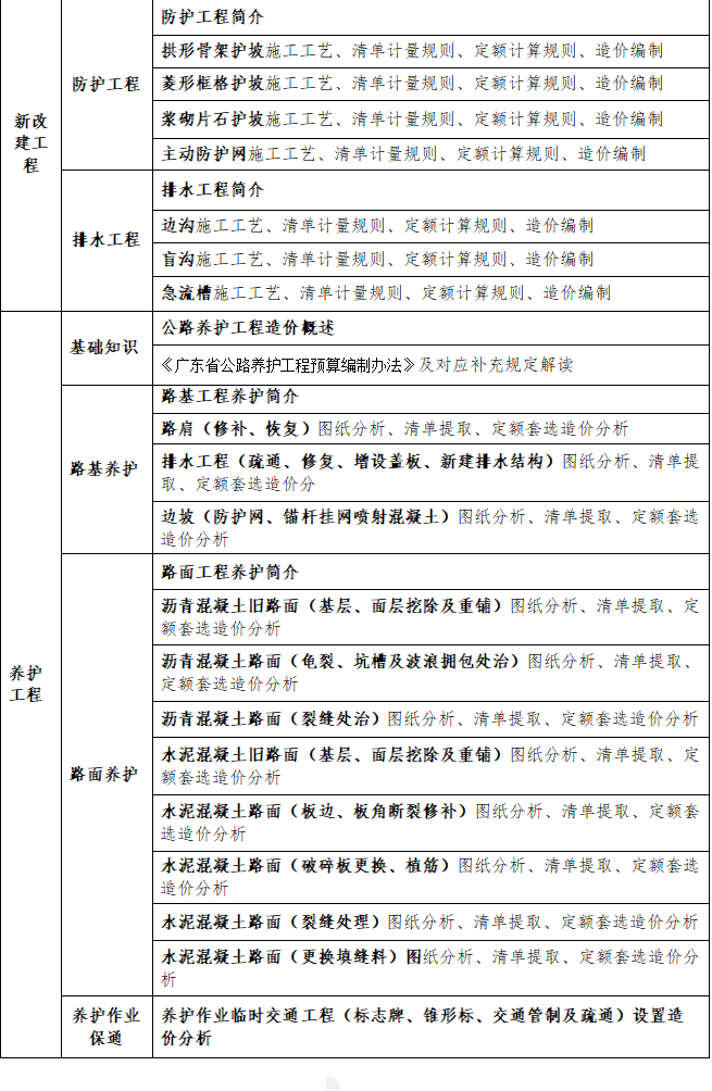 此次培训方式为专项实战式教学,以实际操作结合实例编制工程预算为主导,理论实践相辅相成提高学习效率。培训为期3天,以某高级公路图纸为实例,用2018版《公路工程建设项目概算预算编制办法》及广东相关补充规定、《公路工程标准施工招标文件》(2018版)、粤交基(2010)355号文、2018版《公路工程预算定额》(上、下册)、粤交基(2019)544号文为依据,结合纵横公路工程造价管理系统进行授课,过程中针对客户提出的清单100章总则(2018定额版)、公路营改增文件及在软件应用中存在的常见问题进行讲解分析。