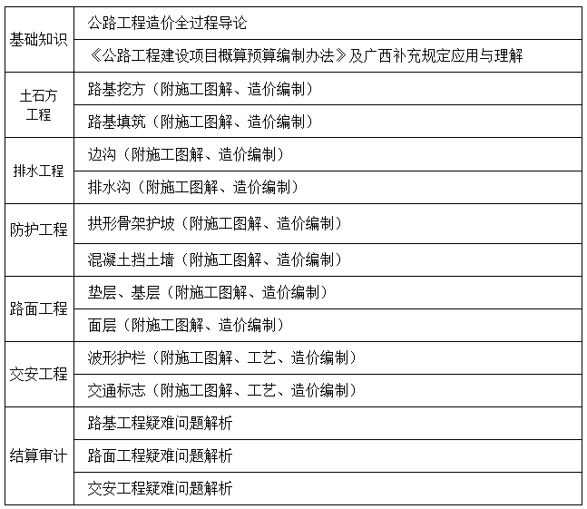 为更好地服务造价人员,解决实际工作中遇到的疑难问题,加强《公路工程建设项目概算预算编制办法》(JTG 3830—2018)、《公路工程预算定额》(JTG/T 3832—2018)、《公路工程机械台班定额》(JTG/T 3833—2018)、《公路工程建设项目造价文件管理导则》(JTG 3810—2017)的理解及应用,推动公路工程造价工作的标准化、规范化、信息化。