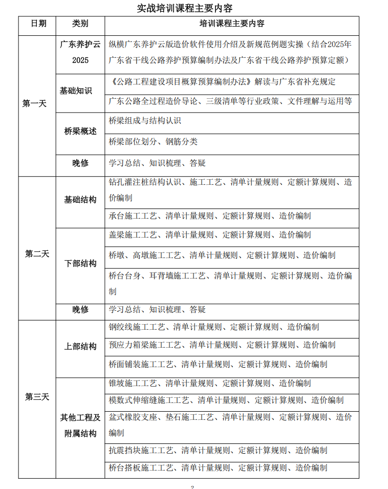 此次培训方式为专项实战式教学,以实际操作结合实例审核与编制工程预算为主导,理论实践相辅相成提高学习效率。培训为期4天,以某高级公路图纸为实例,用2018版《公路工程建设项目概算预算编制办法》及广东相关补充规定、《2025年广东省干线公路养护预算编制办法及广东省干线公路养护预算定额》、《公路工程标准施工招标文件》(2018版)、粤交基(2010)355号文、2018版《公路工程预算定额》(上、下册)、粤交基(2019)544号文为依据,结合大司空云计价系统进行授课,过程中针对客户提出的常见问题进行讲解分析。